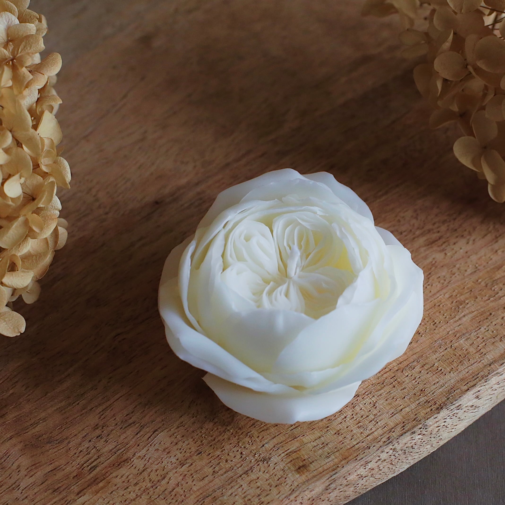 クリームのように柔らかく温かみのある白色の薔薇キャンドルです。