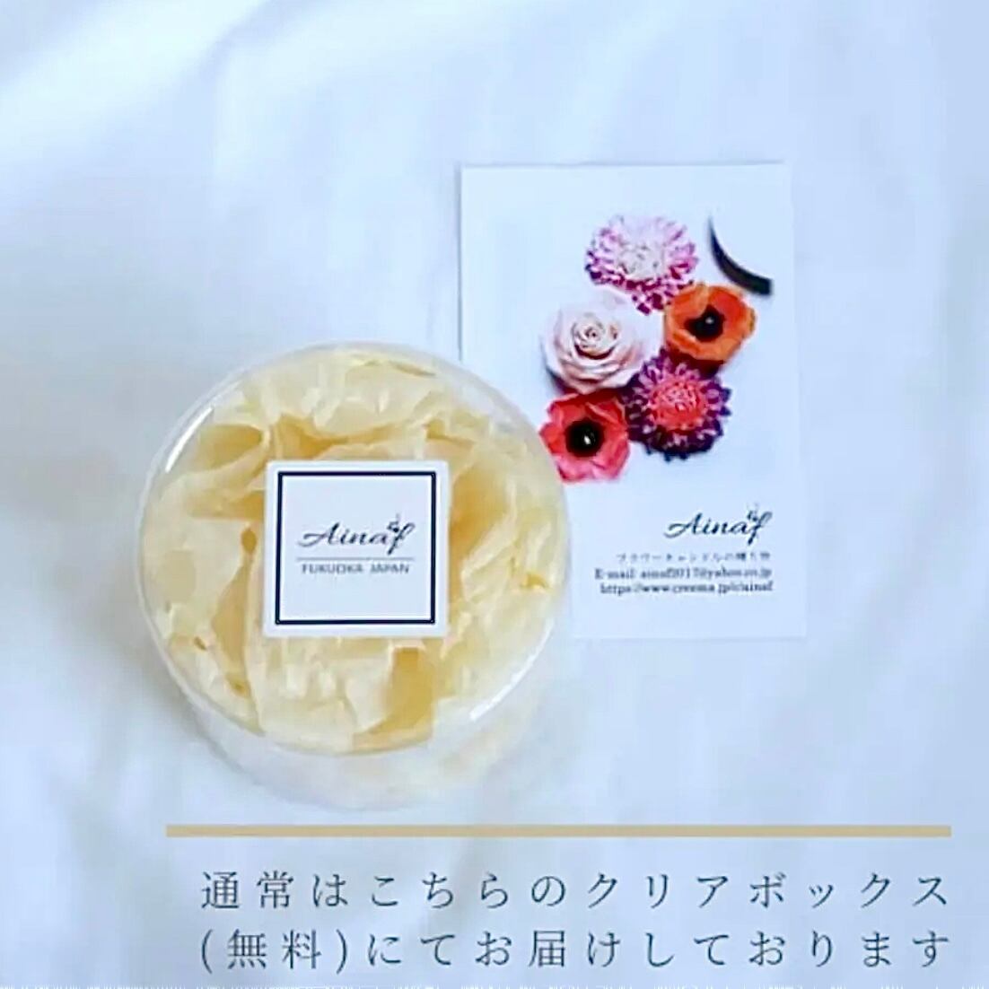 通常、丸型のクリアボックス(ご自宅向き)にお入れしてお届けしております。